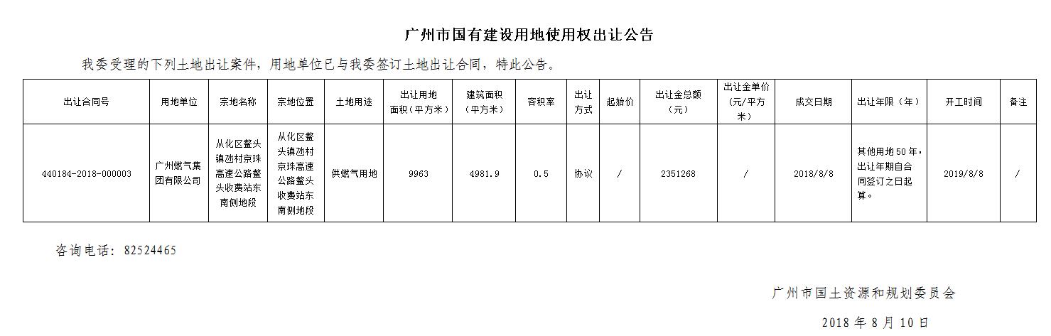 广州市国有建设用地使用权出让公告(2018年8月8日出让地块)