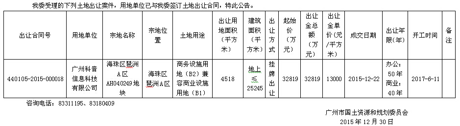 广州市国有建设用地使用权出让公告(海珠区琶洲A区AH040249地块)