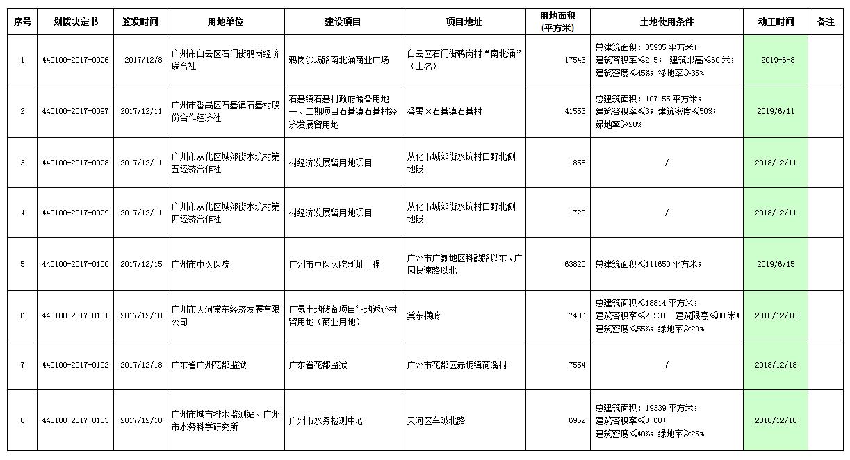 2017年12月广州市国有土地使用权划拨情况公告