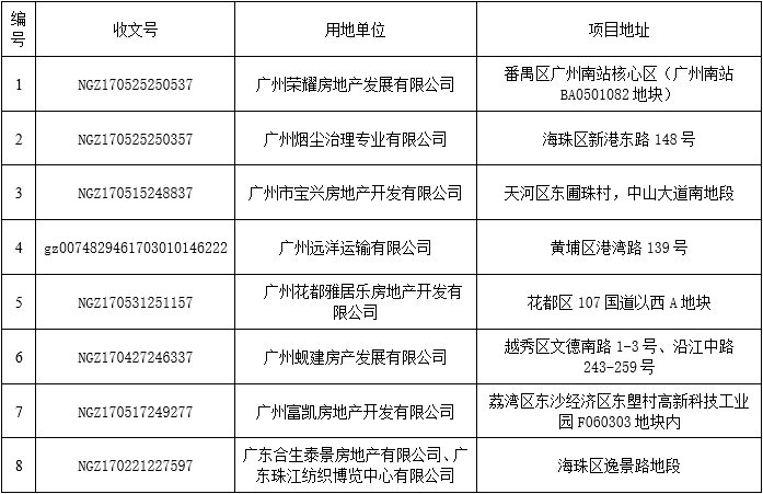 我委受理的下列案件已通过审定,请下列单位按照《关于签订广州市国有建设用地使用权出让合同(含变更协议)的告知函》的规定到我委签订国有建设用地使用权出让合同或变更协议,逾期将作退案处理。(咨询电话:83311195)