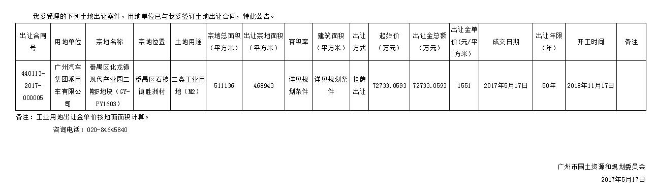 广州市国有建设用地使用权出让公告(番禺区化龙镇现代产业园二期F地块(GY-PY1603))