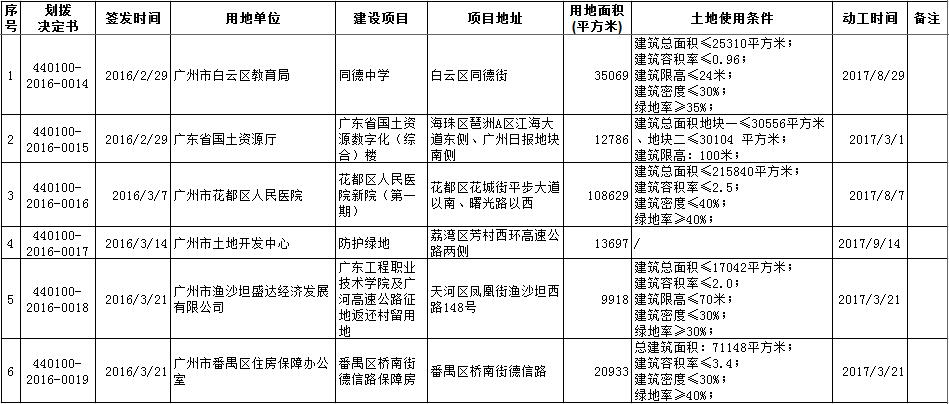 2016年3月广州市国有土地使用权划拨情况公告