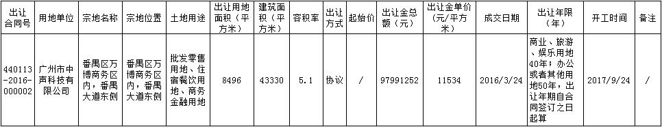广州市国有建设用地使用权出让公告(2016年3月24日出让地块)
