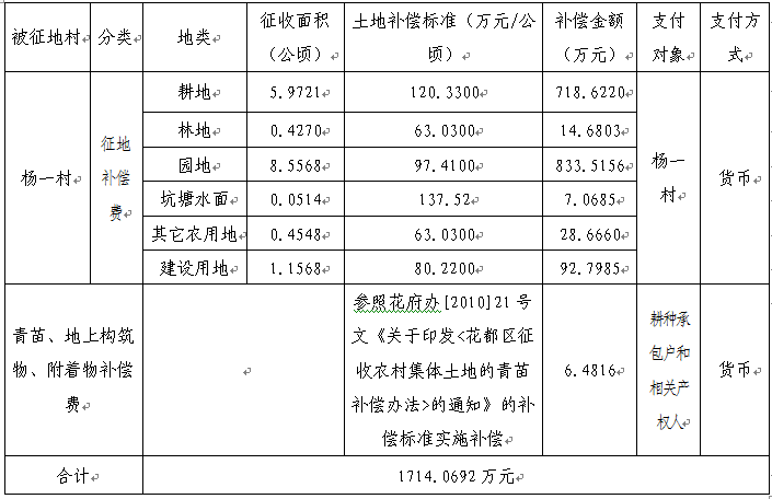 花都区花东镇杨一村的集体土地16.6189公顷(合249.28亩),其中园地8.5568公顷(合128.35亩),耕地5.9721公顷(合89.58亩),林地0.4270公顷(合6.40亩),坑塘水面0.0514公顷(合0.77亩),其他农用地0.4548公顷(合6.82亩),建设用地1.1568公顷(合17.35亩)。