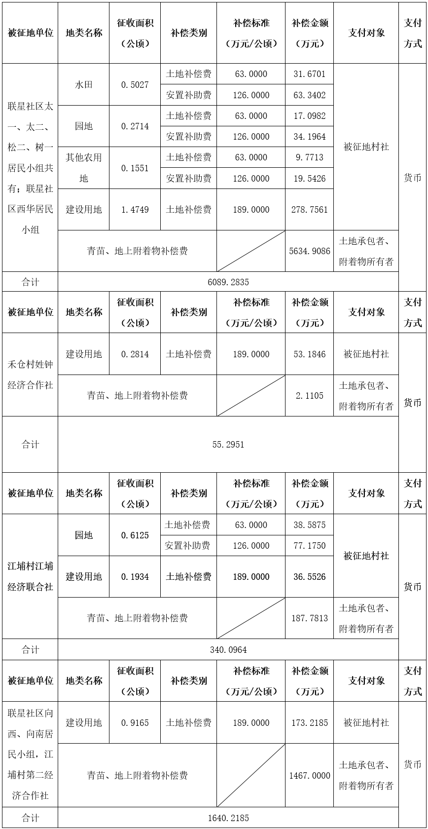 (二)本次征收土地所涉及的被安置农业人员由广州市从化区江埔街江埔村第二经济合作社、江埔经济联合社、禾仓姓钟经济合作社、联星社区向西、向南、太一、二、松二、树一、西华居民小组以货币补偿等形式安置。