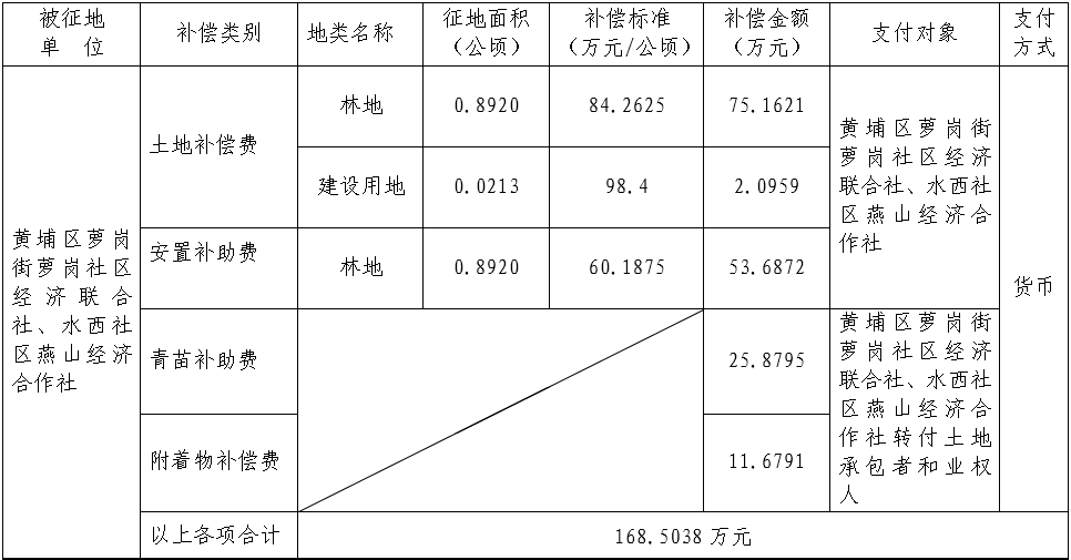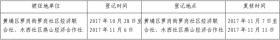 (二)本次征收土地所涉及的被安置农业人员由广州市黄埔区萝岗街萝岗社区经济联合社、水西社区燕山经济合作社以货币补偿的形式安置。请广州市黄埔区萝岗街萝岗社区经济联合社、水西社区燕山经济合作社在本公告期内到广州开发区广州市黄埔区国土资源和规划局领取办理安置农业人口征地农转非手续的函件。