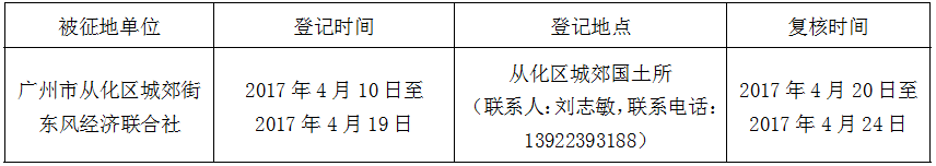经广州市人民政府同意并经广东省人民政府批准(粤国土资(建)字〔2015〕1359号)同意将广州市从化区城郊街东风村12.4507公顷集体土地征收为国有土地。现将经依法批准的《征收土地方案》、市人民政府批准的《征地补偿安置方案》内容和有关事项公告如下: