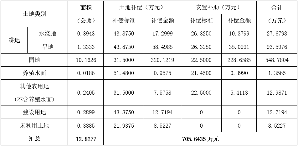 四、征地补偿安置方案:
