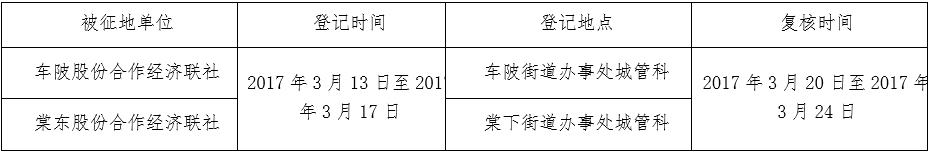 五、被征收土地四至范围内的土地所有权人、使用权人在本公告规定的期限内,持土地权属证书或其他有关证明材料,到指定的地点办理征地补偿登记,请互相转告。
