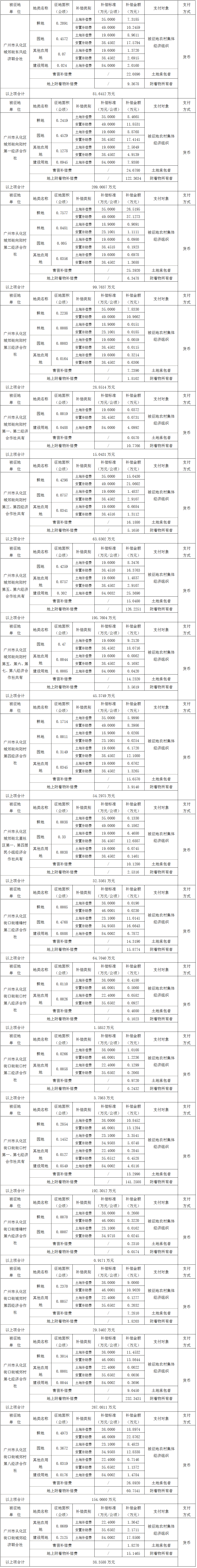 (二)本次征收土地所涉及的被安置农业人员由广州市从化区城郊街东风经济联合社、城郊街向阳村第一、第二、第三、第四、第五、第六、第七、第八经济合作社、城郊街北星社区第一、第四居民小组经济合作社,街口街雄锋村第二、第六经济合作社、街口街街口村第一、第二、第七、第八经济合作社,街口街城郊村第四、第七、第八经济合作社、街口街城郊经济联合社以货币补偿等形式安置。
