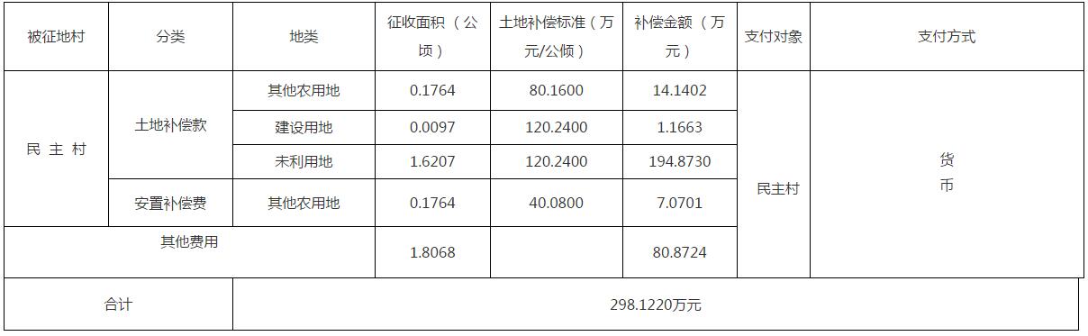 四、征地补偿安置方案: