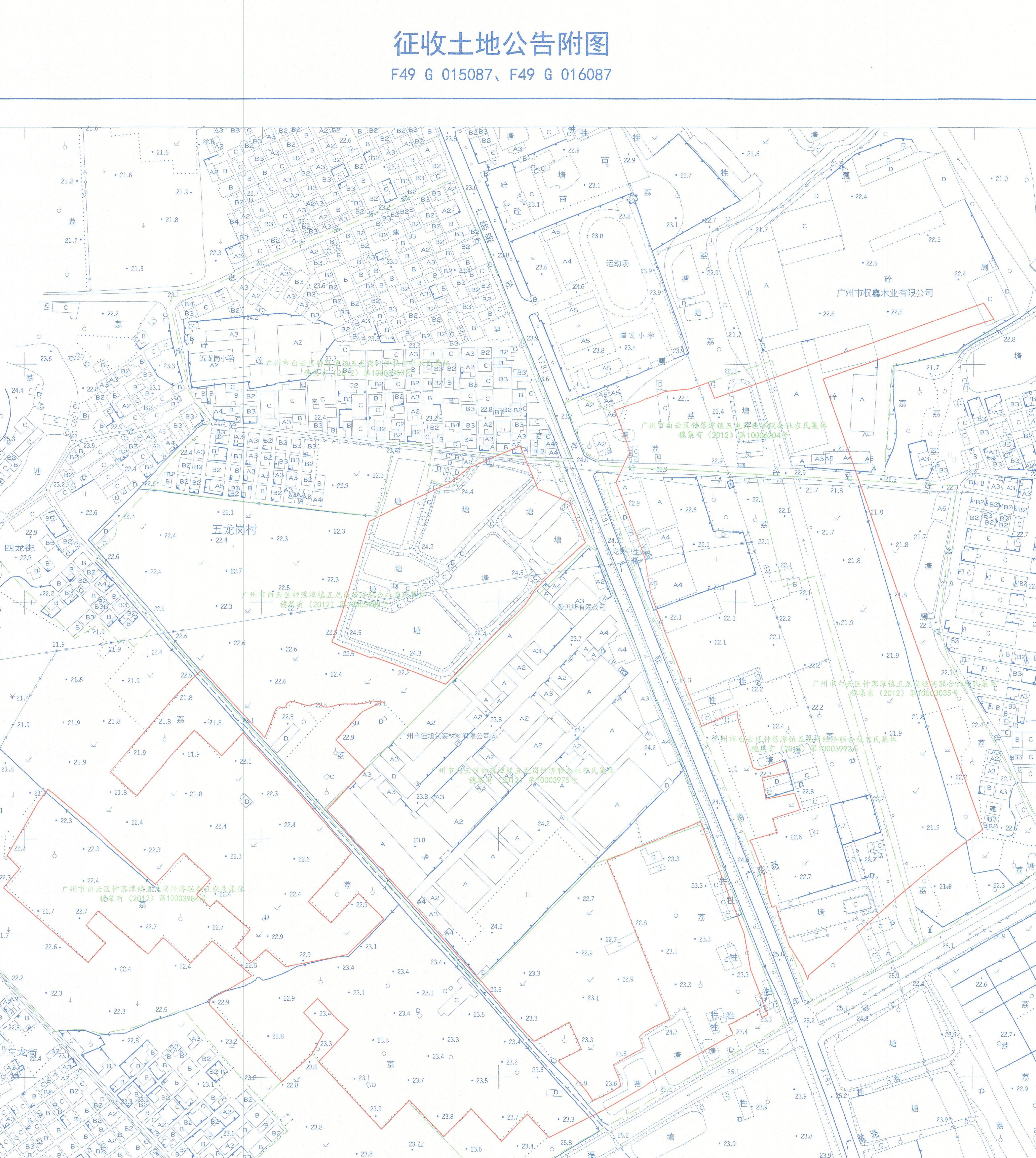 二、征收土地位置:广州市白云区钟落潭镇五龙岗村地段(四至范围详见附图,用地方案号:2019KJ01110098,工程编号:2020土23B118)。