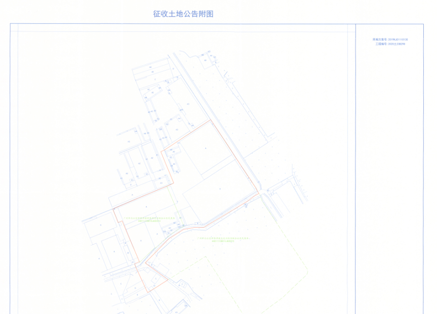 二、征收土地位置:广州市白云区钟落潭镇地段(四至范围详见附图,用地方案号:2019KJ01110130,工程编号:2020土23B298)。
