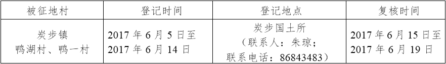 五、被征收土地四至范围内的土地所有权人、使用权人在本公告规定的期限内,持土地权属证书或其他有关证明材料,到指定的地点办理征地补偿登记,请互相转告。