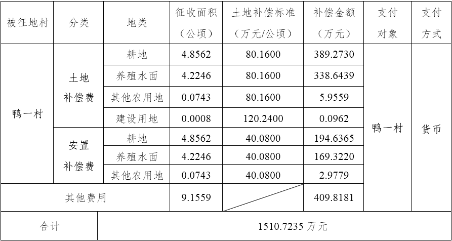 四、征地补偿安置方案: