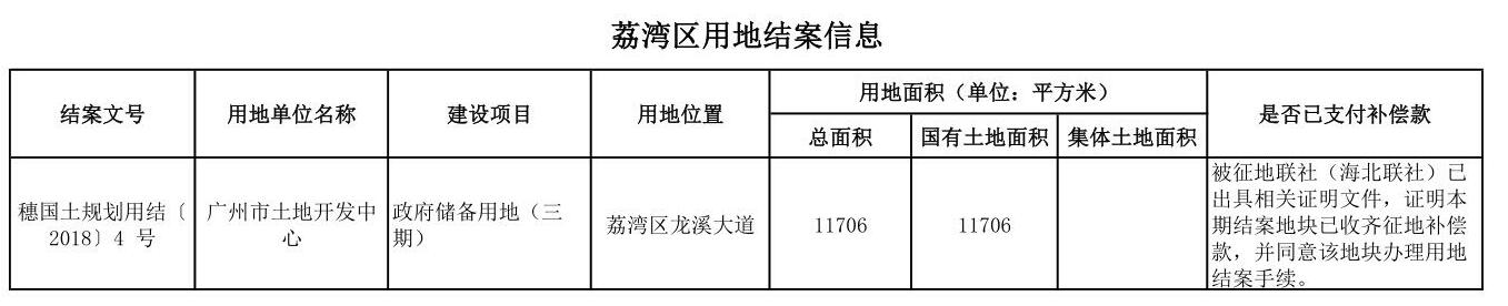 荔湾区用地结案信息