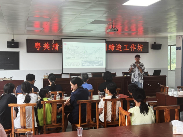 清华大学乡建项目团队和其他高校代表在“成果展示厅”汇报了良平村整体规划、外来游客画像、产业培育策划、标识系统设计、品牌 IP 落地等“粤美乡村”良平共同缔造工作坊(第二期)成果,并与在场的当地村干部、村民热烈互动交流,顶通漫画 与项目团队进行了深入讨论,对后续项目成果的共同缔造实施提出完善建议。