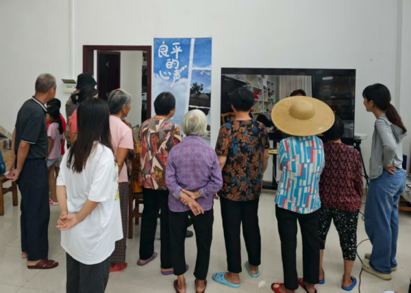 村民观看展览宣传片