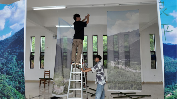 展厅内展示的是良平村的种种照片,它讲述着村庄的过往故事。那些在调研中发现的本土景观和在地元素,也融入了艺术装置。布展过程中,村民们全程主动参与,大家一起动手布置展区和搭建展架,老人和孩子们共同完成艺术装置的拼装......此时,每个人都成了展览的“创作者”,而展览也成了连接集体记忆的纽带。