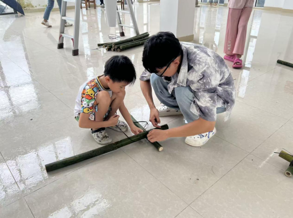 队员与村民拼装艺术装置