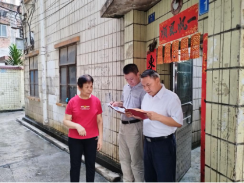 图二 调研组在白云区草庄村入户随访“房地一体”颁证到户情况