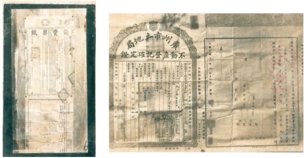1929年断卖契纸照(广州市房地产档案馆馆藏)  1929年不动产登记确定证照(广州市房地产档案馆馆藏)