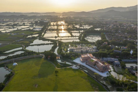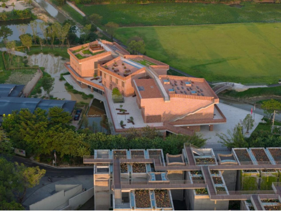 项目选址充分尊重村落的整体格局和历史风貌,以谦逊姿态,与春阳台共同融入村落地理环境中。非常建筑事务所张永和先生及其团队深入挖掘塱头村“塱”字本意——“江畔洼地”或“湖泽池塘”的地理特征,将建筑视为自然环境的有机延伸。“人地和谐”的理念贯穿始终,设计巧妙呼应了珠三角传统农业应对洪潮的智慧——建筑与桑基鱼塘交织,古籍书香与泥土气息交融,将建筑视为新的“环境适应体”,让“耕读”从抽象理念化为可感可知的日常体验。