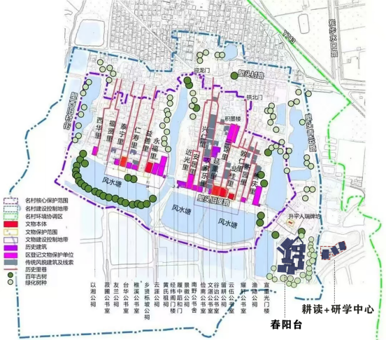 “耕学+”研学中心、春阳台与塱头古村的空间关系