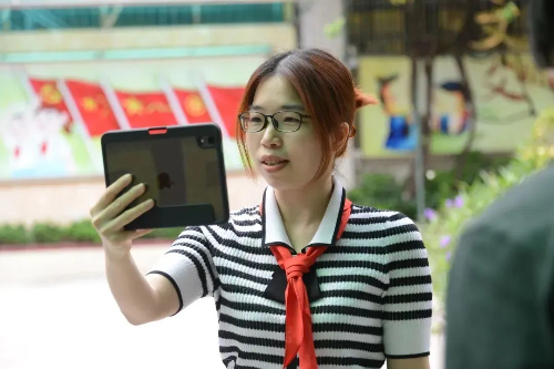 4月13日下午,海珠区同福中路第一小学的曾倩仪老师组织三至六年级大、中队云游校园,由同心大队干部担任“同心绿植”讲解员带领队员一起认识校园的绿植,并探讨如何保护绿植,保护生态环境。