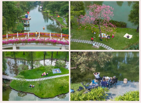 中心湖公园位于广州大学城的中心,是初尝露营乐趣的绝佳选择,是Z世代年轻人追求社交与潮流体验的绝佳场所。公园内拥有开阔的湖景和大片草坪,成为户外野餐、飞盘游戏或即兴音乐聚会的理想场所。环湖跑道和骑行道也满足了年轻人运动打卡、健康生活的需求。